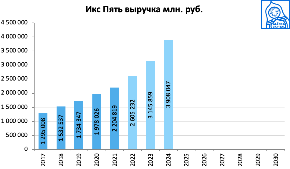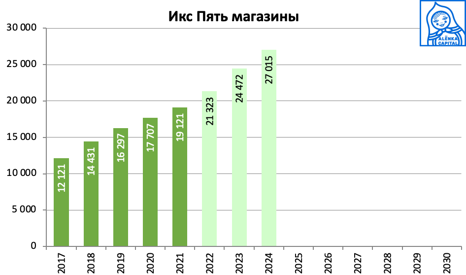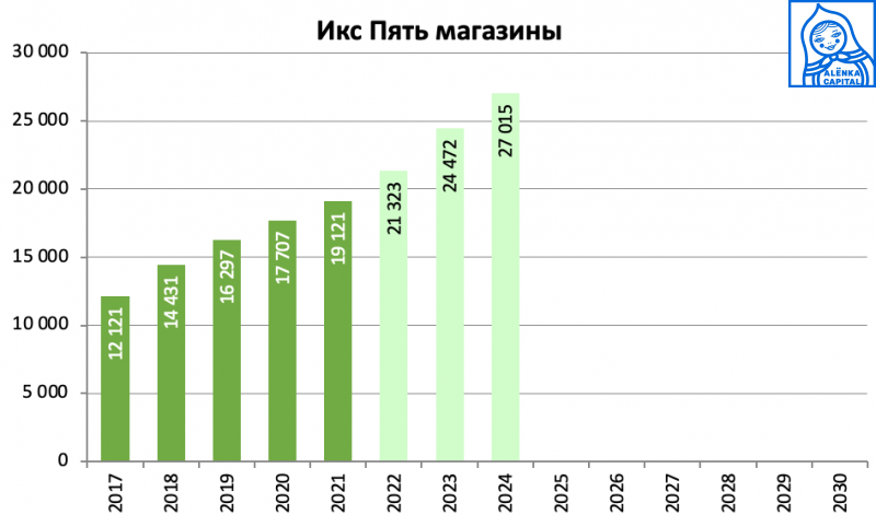 7 трлн выручки и 4000 магазинов, по старым подсчетам давали ориентир в 7000 рублей к 2028 году (сейчас акция стоит около 2500-2600 без extra-дивиденда).
