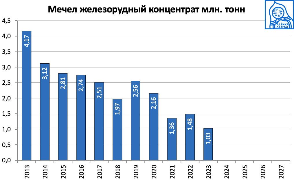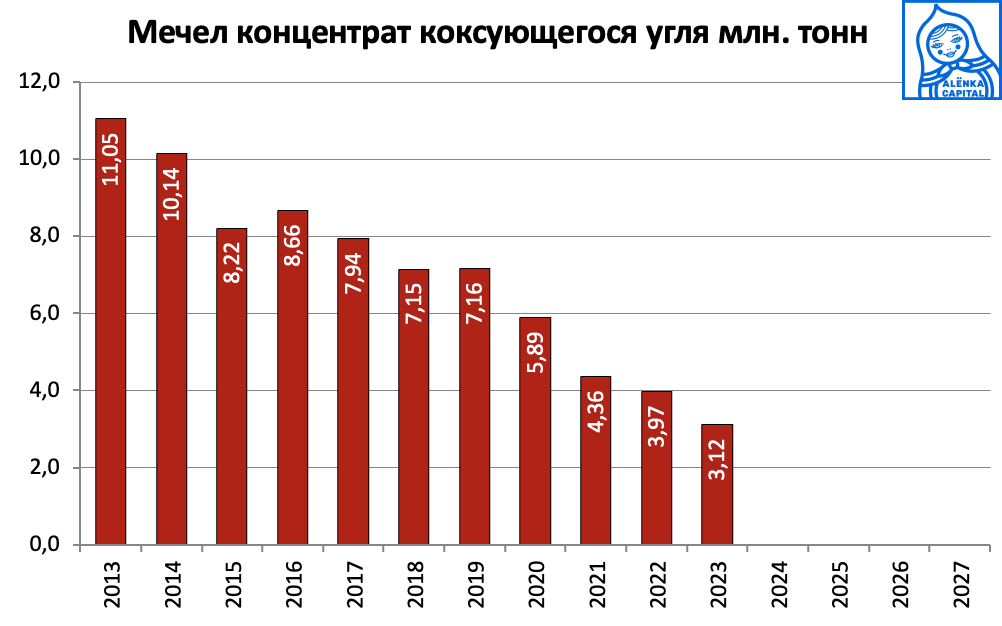 Тут ошибки в тексте, концентрата металлургического угля в 2023 не было 9 млн тонн, а только 3 млн тонн