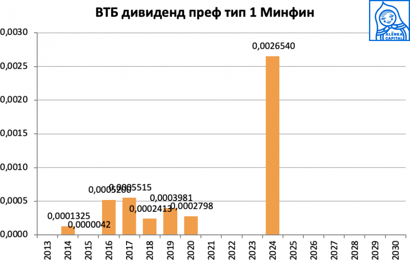 Так как банк неожиданно вернулся к выплате дивидендов по своей старой дивполитике, где дивиденды на разные типы акций разные, то мы убираем пузырек префы = обычке.