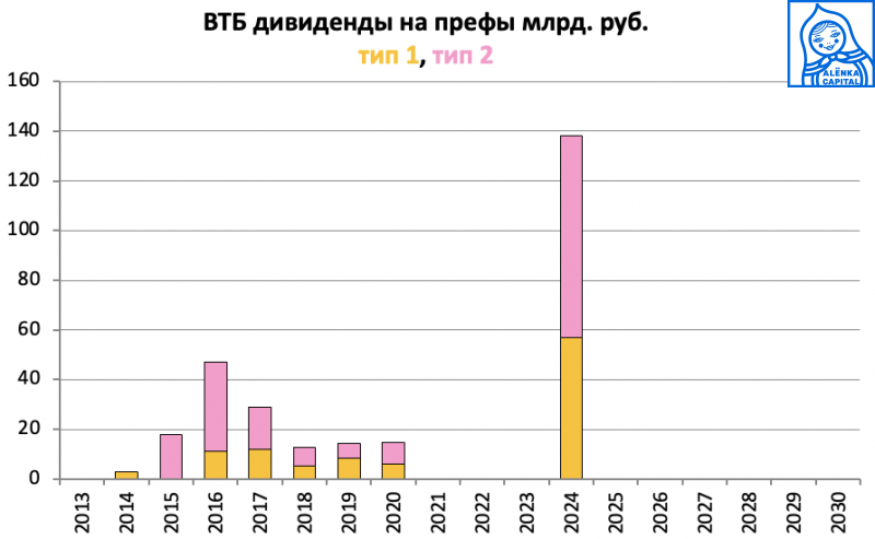 Везде почитал кто что пишет про ВТБ. Даже на Аленку подписался, чтоб почитать, что у вас. Но везде одна проблема - вы не учитываете нормативы ЦБ. Например payout за 2024 может быть ноль.. ) Почему - потому что ЦБ восстанавливает надбавки к нормативам достаточности капитала, пошагово до 2028 года. И в частности Н20.1 должен быть у ВТБ на 1 января 6,25%, плюс минимальный буфер пусть 0,25% = 6,5%. Сейчас 6,4%, после выплаты грубо 5,3%. Значит ВТБ надо подняться на 1,2% по базовому капиталу. Никакими субордами это не закрыть. И это порядка 300 млрд надо где то взять. При том что банк убыточный на операционном уровне. Значит будет допка. Вопрос только в ее размере