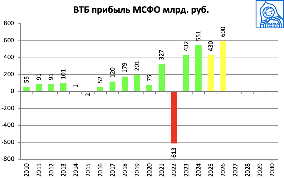 Прибыль банка, с учетом прогноза на 2025 и 2026 год:
