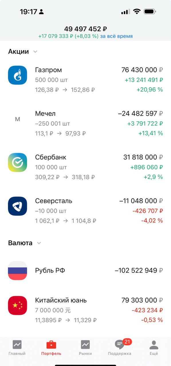 Банки в Казахстане это была прекрасная идея. Но их я поменял не на ВТБ, а на закрытие плеча в $0,5 млн и Tesla и ZIM на распродаже.