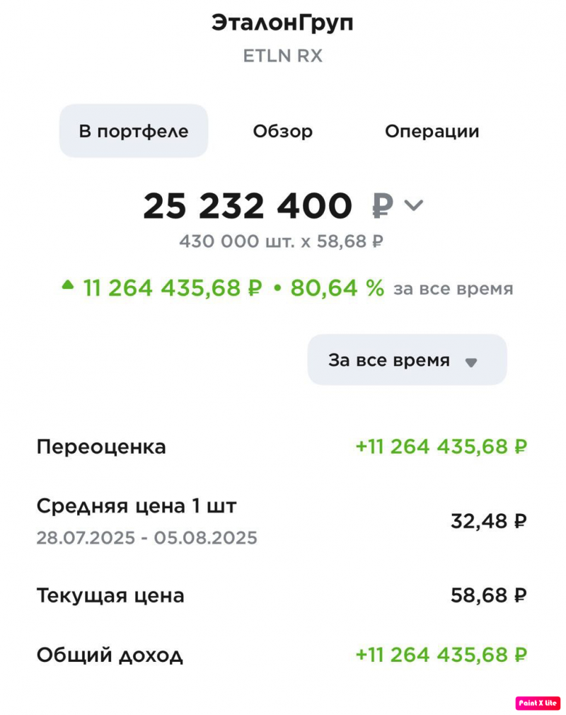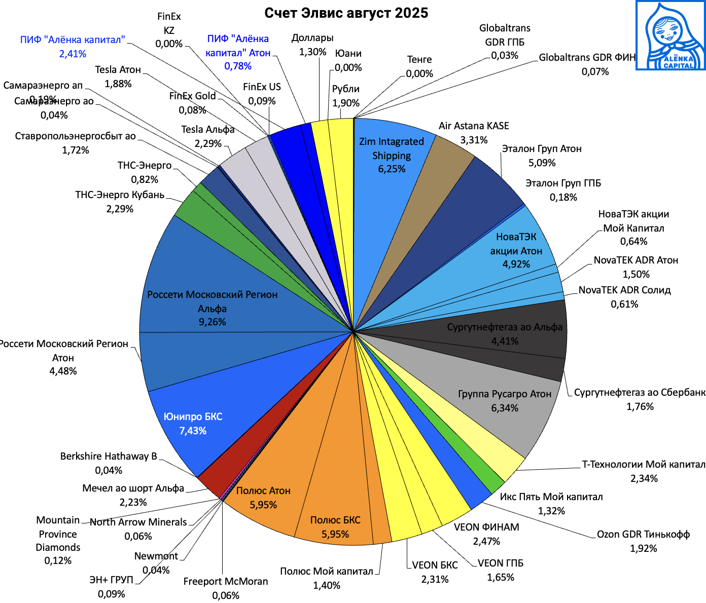 Портфель структура 2025.08.03. GDR Etalon конвертировались в акции Эталон груп