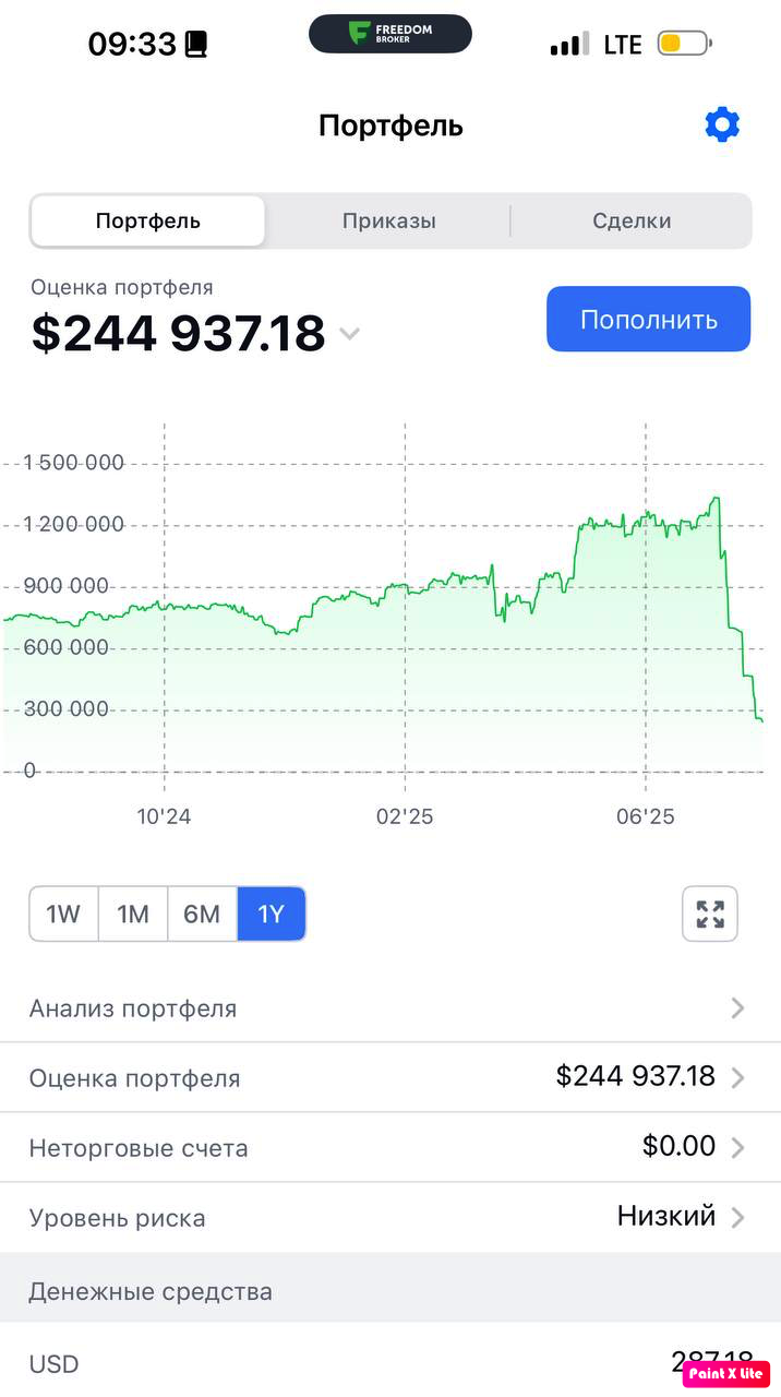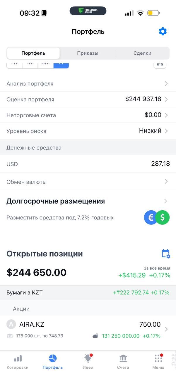 Также почти полностью вывел деньги со счета в Freedom Finance, оставил только Air Astana, докупив на отчете до 1/2000 компании.