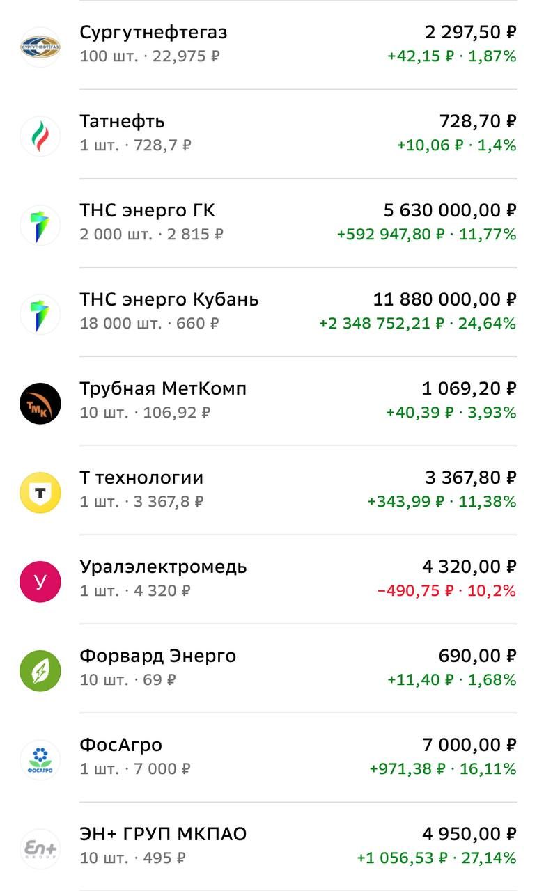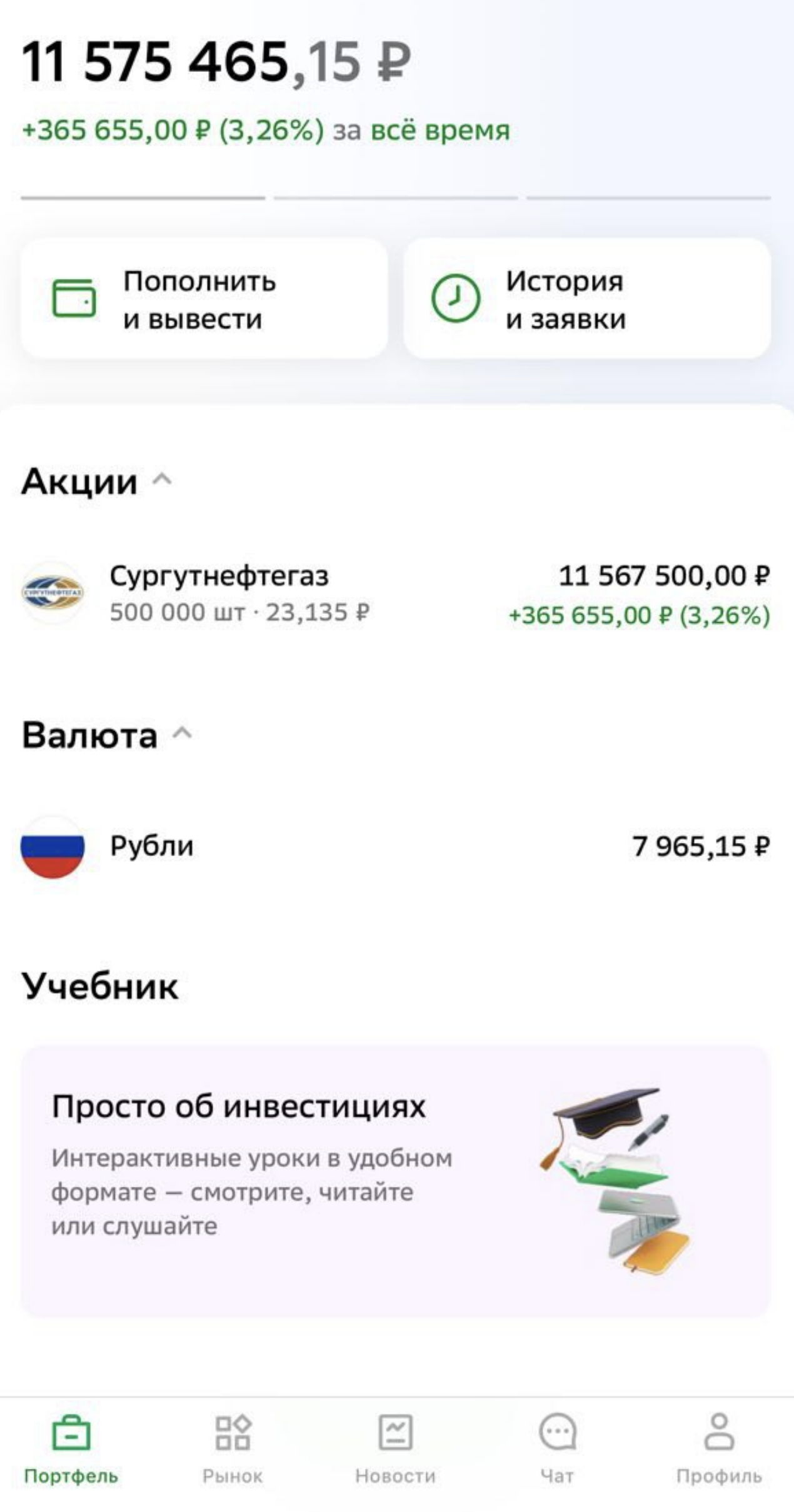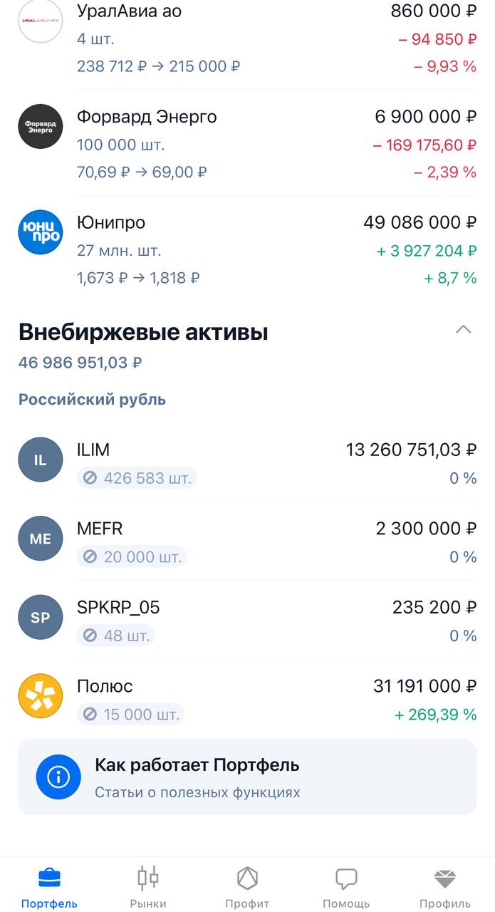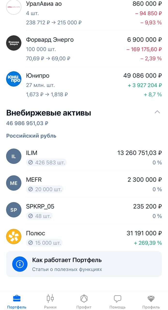 Портфель сегодня такой: