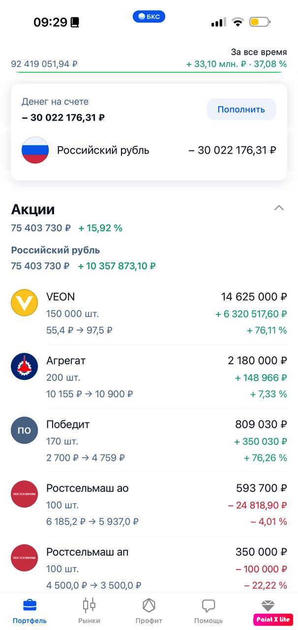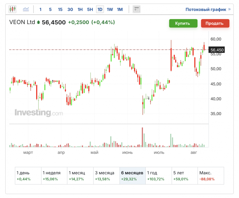 5. Докупил VEON на Мосбирже до 400 000 акций.