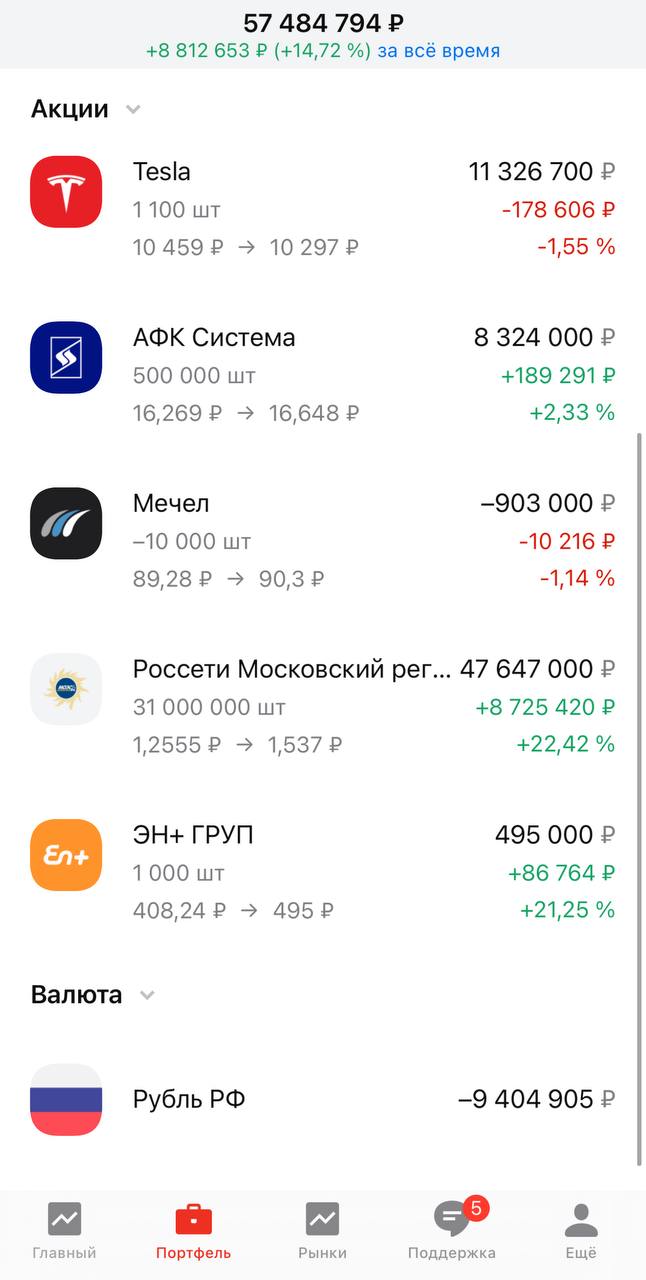 Завел 4 млн рублей в Т-Банк хотел поскупать акции Tesla, но на БСП неликвид, собрал чуть больше 100.