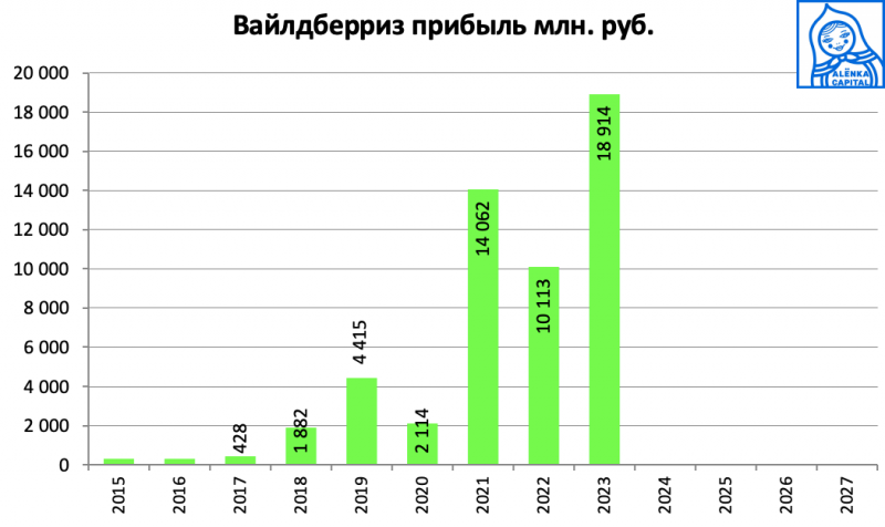 По итогам 2024 года чистая прибыль объединённой компании Wildberries и Russ (РВБ) составила 104 млрд рублей, что в 3,5 раза больше показателей 2023 года