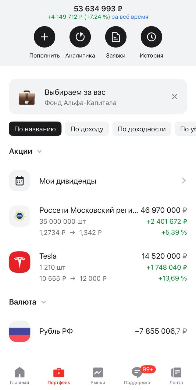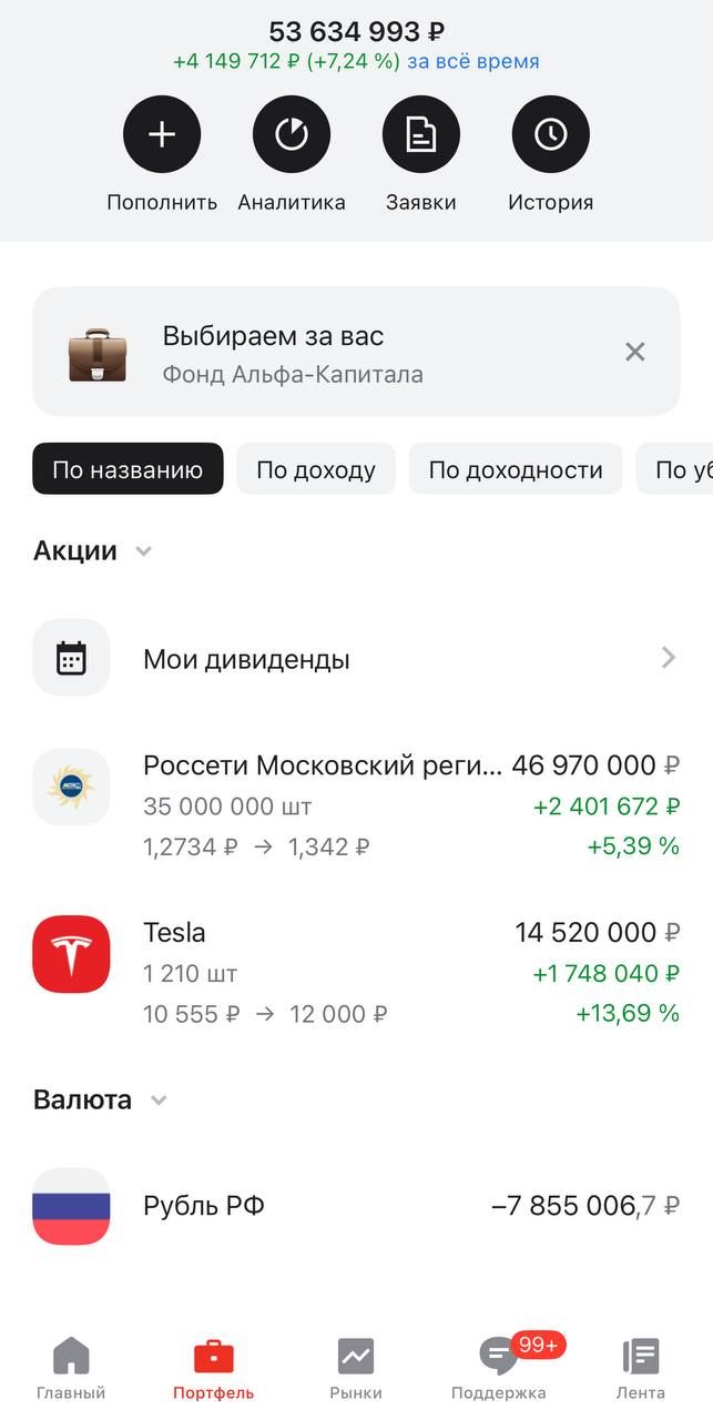 При этом я продал часть Т-Технологий после отсечки в Т-Банке в субботу, удивившись небольшому гэпу, а на деле гэпа в понедельник вообще не было, а был рост!!!