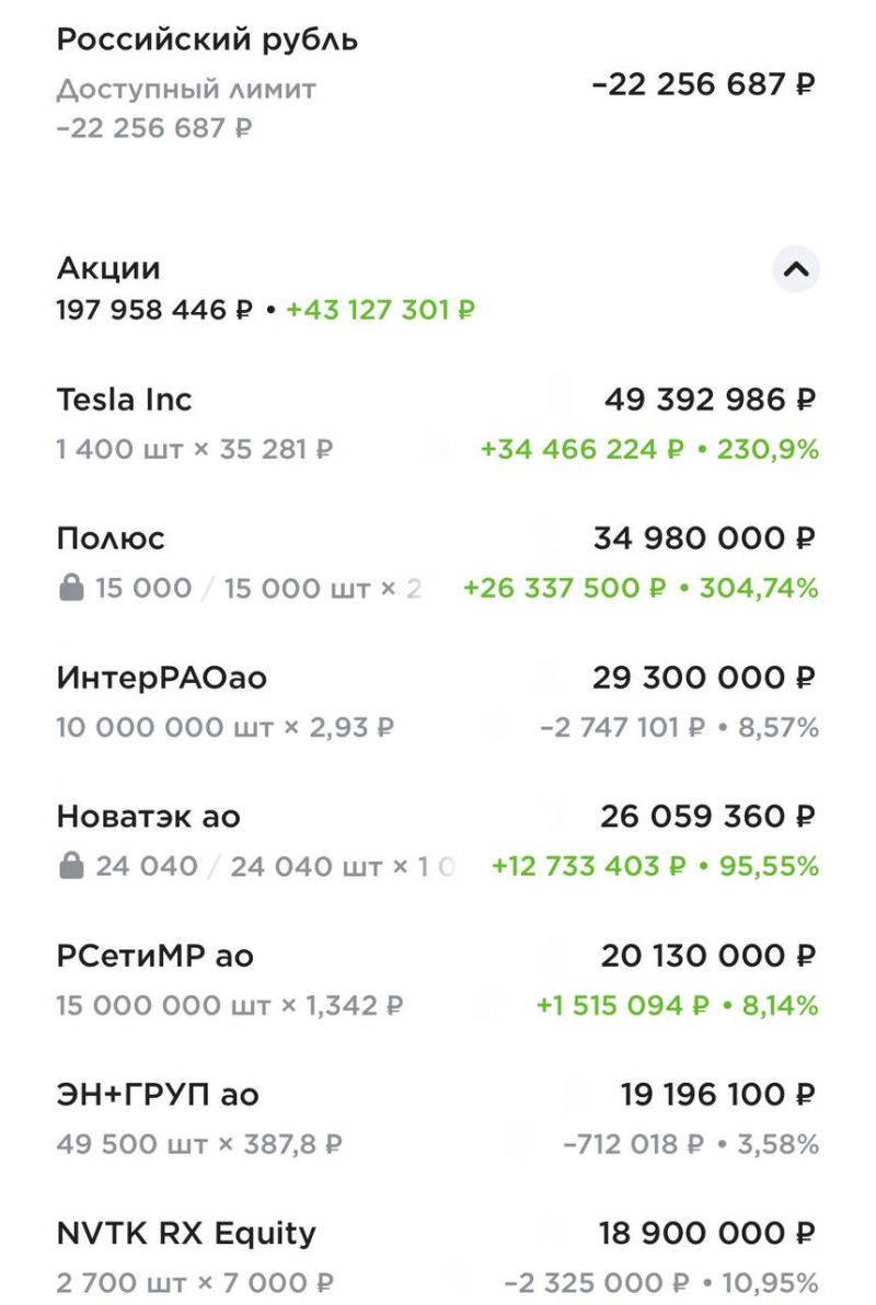 У нас было 2 лота Теслы, 75 позиций в экспортёрах, 5 шортов акций Совкомбанка, полсолонки Веона и гора Новатэка, расписок и всего такого, всех цветов... Не то чтобы это всё было нужно в поездке, но раз начал коллекционировать акции, то иди в своём увлечении до конца. Единственное, что меня беспокоило — это шорт фьючерса на РТС. В мире нет никого более беспомощного, безответственного и безнравственного, чем человек в шорте фьючерса РТС. И я знал, что довольно скоро мы в это окунёмся.